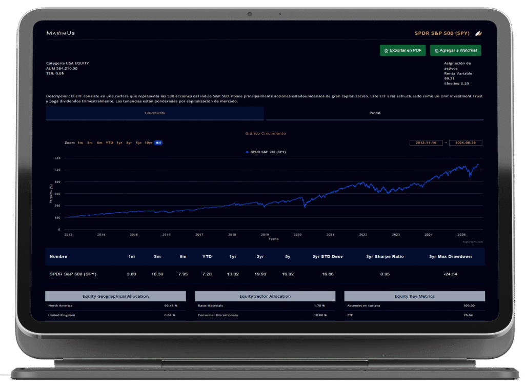 - MaximUs te permite combinar todos los tipos de activos necesarios para preparar una propuesta de inversión profesional, clara y diferenciada.